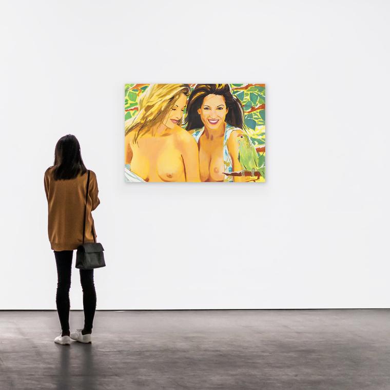 Итак, Виноградов и Дубосарский строят русский Эдем — новый рай, неотъемлемыми элементами которого становятся роскошные девушки, щедрая природа, вечный праздник и сказочное удовольствие от соединения с окружающим миром. В этот дивный пейзаж художники добавляют нотки провокационного и экзотического, помещая рядом с девушками попугая на ветке. Общее настроение беспечности и жизнеутверждающей радости навеяны соцреалистической живописью, что считывается по светлому колориту работы, а также изображениям пышущих здоровьем и красотой молодых девушек. Однако их образы, пропитанные телесностью, выполнены по-современному экспрессивно, размашистыми мазками, что заявляет о внутренней свободе и способности бросить вызов устоявшейся художественной системе. V