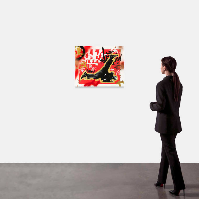 «Перед нами изображение разминающегося после столетней спячки Владимира Ильича Ленина. Мир, в котором сегодня пробудился вождь, бесповоротно изменился. Вместо кумача и алых знамен сейчас повсюду яркие граффити и тэги уличных художников. Громкие призывы к свержению буржуазии и установлению мирового господства пролетариата теперь зачитываются в хип-хоп традициях, под ломаные биты и мощные басы. Наследие Маркса приняло новые блокчейн формы и отправилось в вечность. Мавзолей наконец-то опечатан, а самого Ильича можно встретить в телевизионных шоу и ночных клубах».