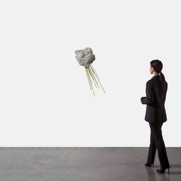Бетонное облако, пронизанное светом, создает образ, отсылающий к классическому искусству. Вероятно поэтому художник выбрал для серии объектов из цемента столь ироничное название — «Возвращение к живописи». Брутальный материал, из которого сделана работа, расширяет границу допустимого, включая в искусство бытовые, прикладные вещи и придавая им новые смыслы — обыгрывая, отчасти в пародийном ключе, взаимоотношения современности с классикой. V