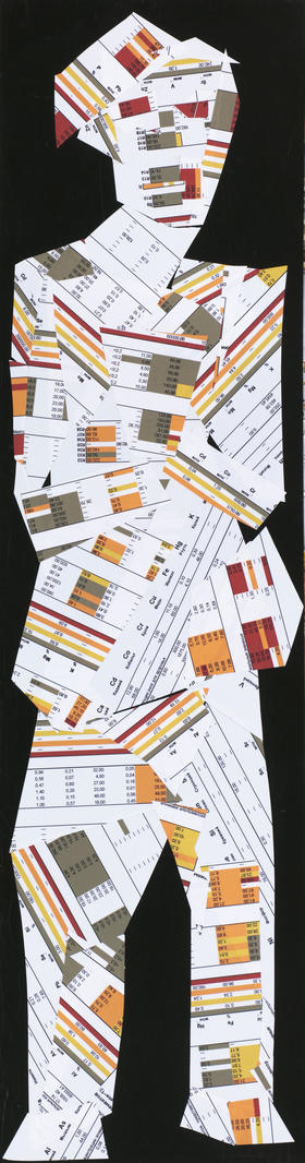 Работа в технике аппликации — коллаж с изображением антропоморфной фигуры с неопределенным гендерным статусом. Произведение может вызывать свободные ассоциации у зрителя.