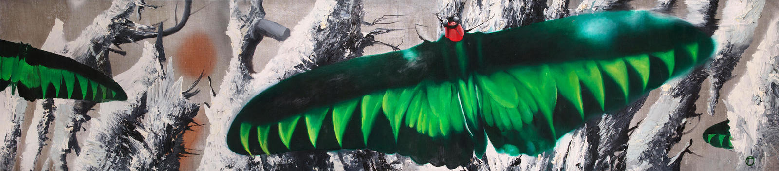 Книга оказалась очень затягивающей. На некоторое время бабочки целиком вошли в мою жизнь. Несколько из моих картин участвовали в шикарной выставке в Русском музее под названием «Рожденные летать… и ползать», в том числе и «Орнитоптера (Брука)», которую вы здесь видите.