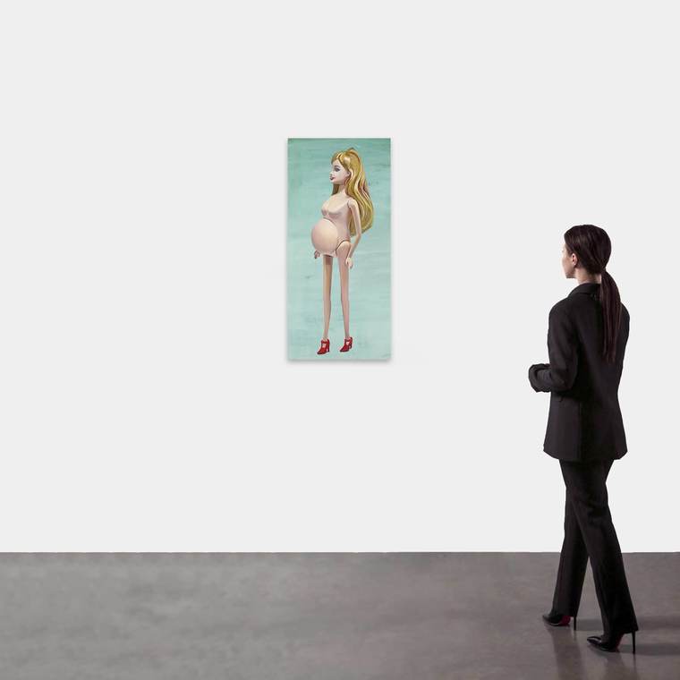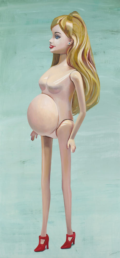 Героиня этой картины — стандартная кукла, не отражающая эмоций. Я часто сравниваю в своих работах человека и куклу: кукла не имеет физиологии, но может ее изображать. Изображение физиологии намного интереснее, потому что это изображение чувства или чего-то неконтролируемого и данного нам природой. И вот мы уже думаем об этом — о своей природе, изменчивости, красоте, наслаждении, конечности, опыте, о том, что мы не можем передать другому. Эти образы выстраиваются в символические системы, смещая внимание с объекта на наши чувства и взаимодействия. Мы часто ощущаем присутствие еще одного человека рядом. Реальность по-прежнему не успевает за реализмом. В реалистической картине мы видим ответный взгляд, которым картина смотрит на нас.