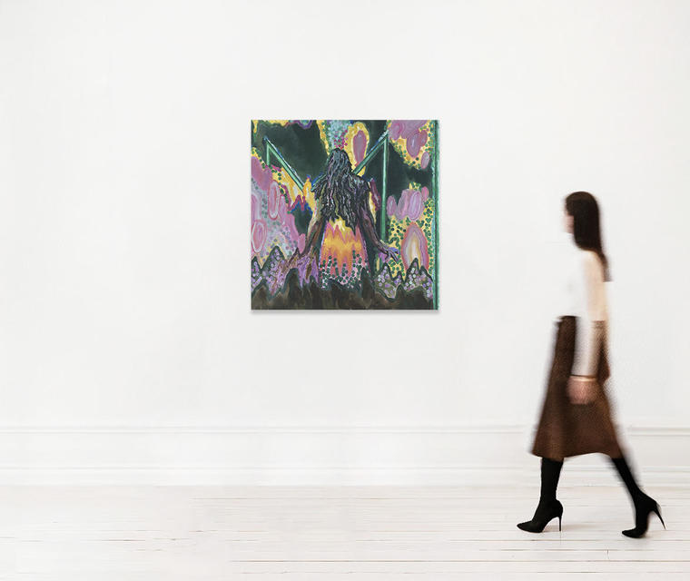 «В основе любой моей живописи лежит коллаж из случайных имиджей, найденных в сети. Собирая цифровые осколки в одном изображении, разлагая и деформируя их при помощи графического медиума, я получаю в остатке несуществующее событие, не подчиненное привычным причинно-следственным связям. Погружая полученный результат в пространство живописного опыта и качественно преобразуя его, я воссоздаю на его основе альтернативную вариацию реальности и приглашаю зрителя остаться наедине со свершившимся “живописным фактом”, открытым для индивидуальных интерпретаций и необусловленного эмоционального взаимодействия. Картина, представленная вашему вниманию, — пример одного из таких холстов с открытым нарративом».