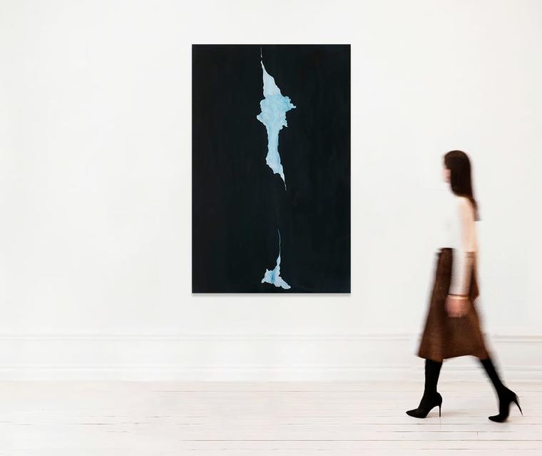 «Меня интересует всматривание в линии, описывающие объем лица и двусмысленная эмоция — обнажение зубов и линии десен. Изображение заслонено черным объемом, оставляющим лишь небольшой просвет».