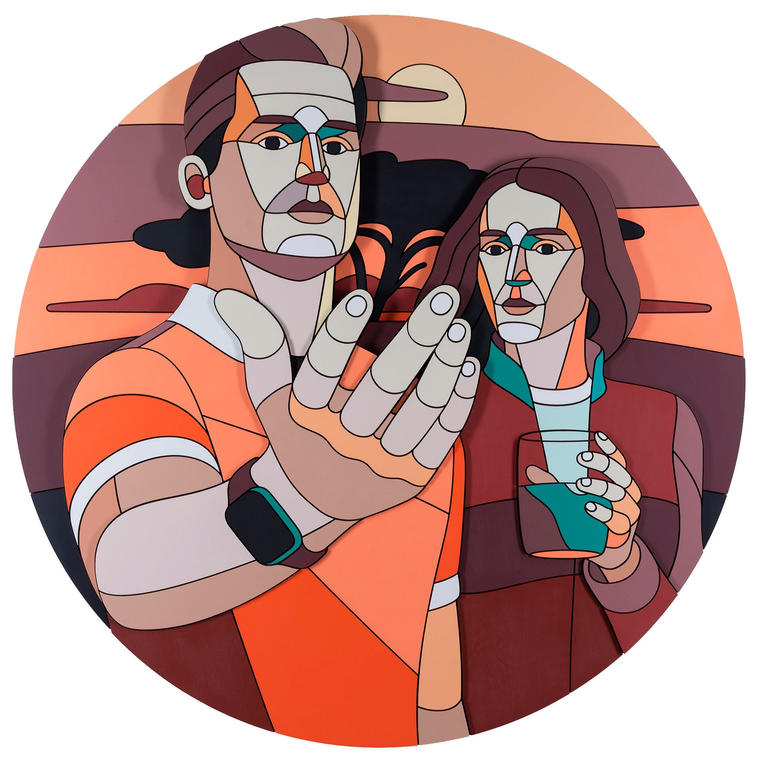 Иван Разумов — российский живописец, график и иллюстратор, чей стиль сформировался под влиянием классической советской школы графики 1930-х годов. В 1997 году он начал заниматься печатной иллюстрацией к периодическим изданиям и классике литературы, а впоследствии использует графические приемы в произведениях живописи. Лейтмотивы творчества художника — столкновение и эротизация образов советской, новой российской и западноевропейской культур. В основе его сюжетов — аллюзии на кинематографические и литературные эпизоды, психоаналитические теории, политические и социальные события, а также распространенные мифы. Со временем этот круг расширяется и захватывает актуальную повестку. Работы художника входят в коллекцию Centre Pompidou (Париж). V